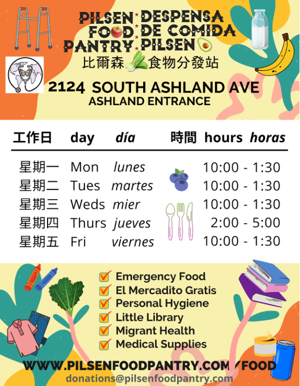Food is free at the Pilsen Food Pantry. Although our target areas are the 60607, 60608, 60609, and 60612 zip codes, we provide free food to anyone in need from any zip code.